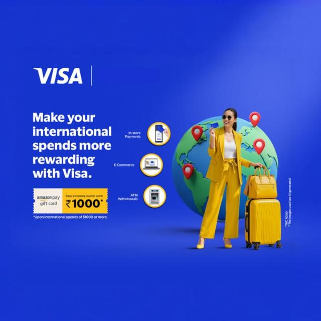 Get rewarded on international spends with Visa—₹1,000 Amazon voucher assured